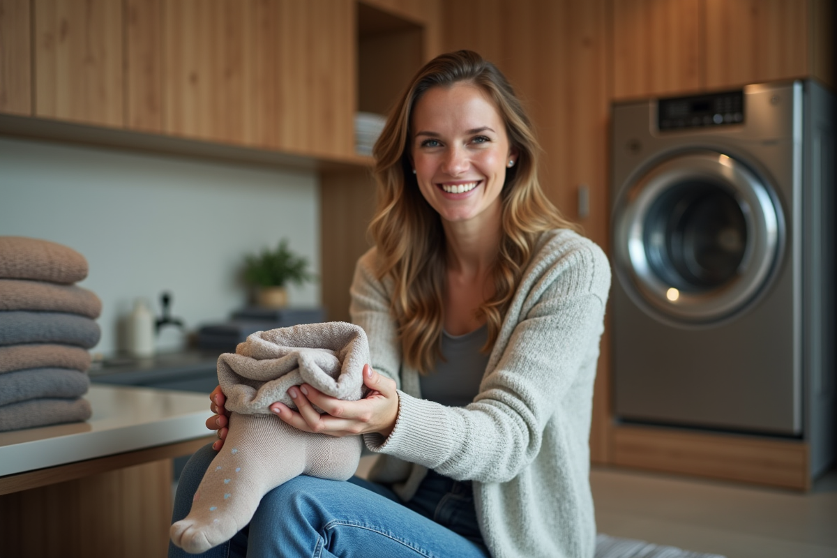 Privilégiez une lessive douce, de préférence hypoallergénique. Les produits naturels respectent la peau et les textiles, en particulier pour la laine, la soie ou le cachemire. Les agents blanchissants et les enzymes trop agressifs sont à éviter, car ils fatiguent la fibre. L’adoucissant, lui, a tendance à casser l’élasticité et peut même rendre la chaussette rêche. Une dose modérée de lessive et un essorage délicat suffisent à obtenir une propreté durable.